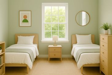 Our shared bedrooms are thoughtfully arranged to prioritize both privacy and connection. Each resident has their own personal space within a tranquil, well-lit environment. Clean lines, warm color palettes, and storage solutions make these rooms feel peaceful, organized, and nurturing — a true place to rest and recharge.